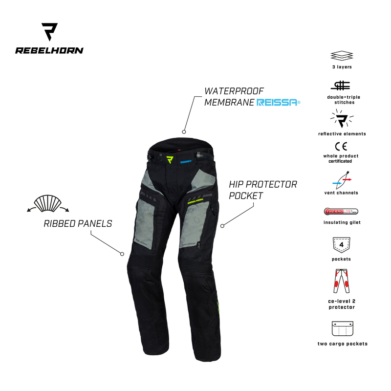 Мотоштаны текстильные Rebelhorn CubbyIV черный/серый/флуо/желтый